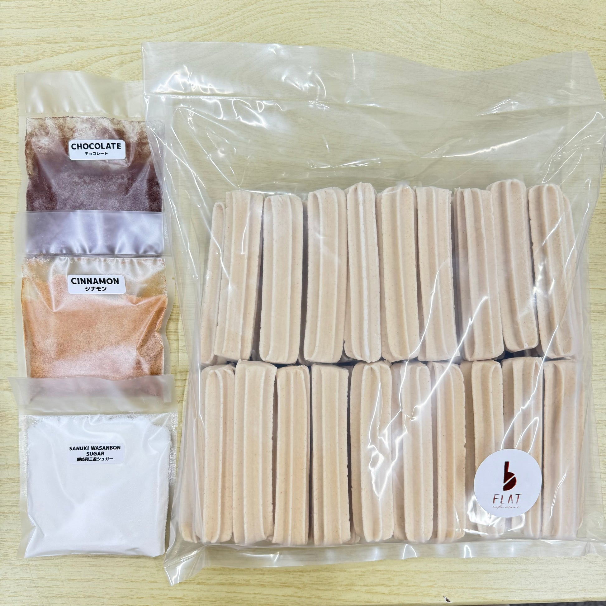 | 内容量 | 【さぬきチュロス】10cm×40本【讃岐和三盆シュガー】50g【チョコシュガー】50g【シナモンシュガー】50g |