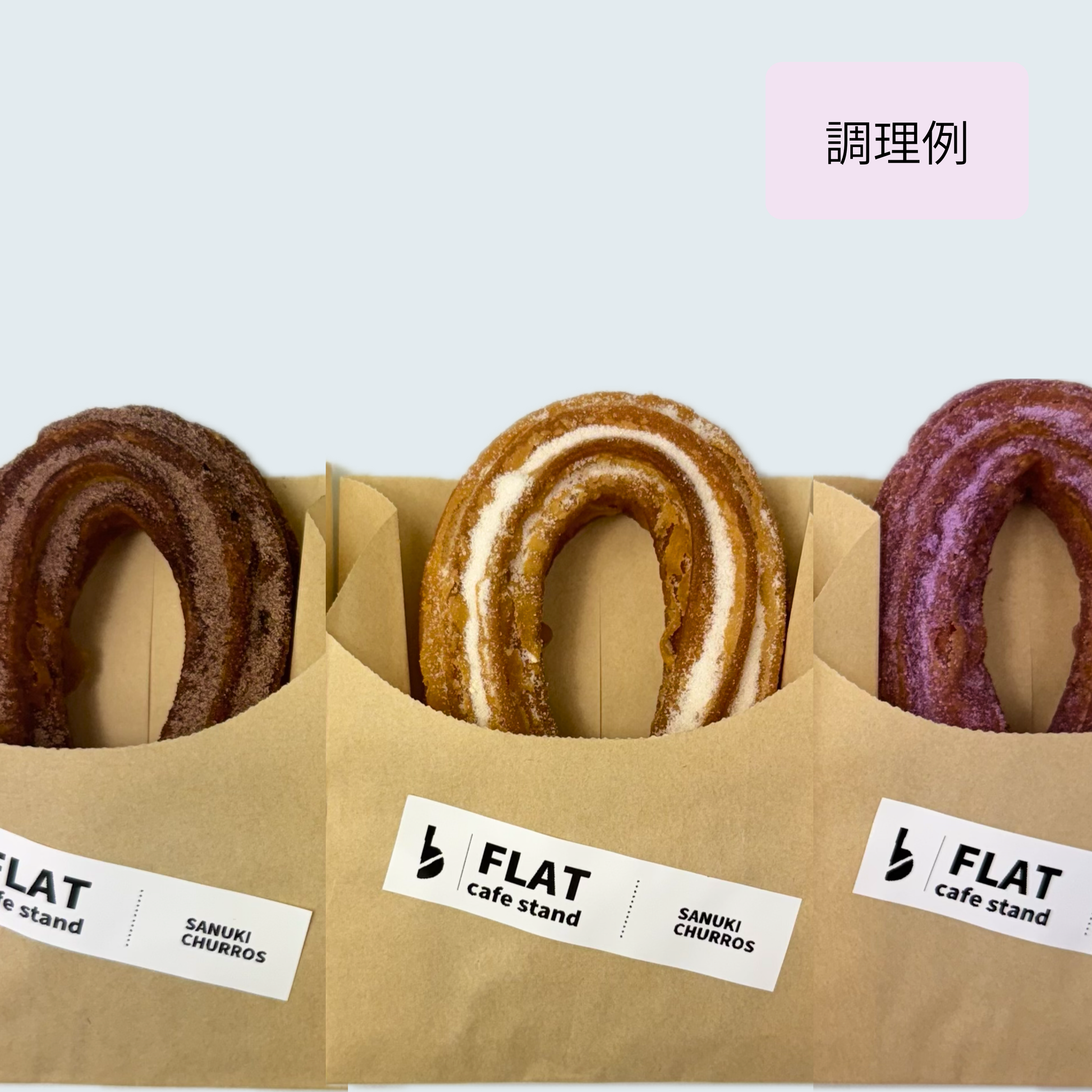 その香川県産小麦『さぬきの夢』を100%使用し、他では味わえないもちもち性と適度な弾力性、風味の良いチュロスとなっています。
